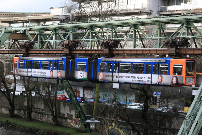 Die folgende Bildergalerie zeigt die Schwebebahnen der Baureihe 1972 mit ihren Werbebeklebungen. Die Fotos entstanden ab 2006, ältere Beklebungen sind hier nicht abgebildet.